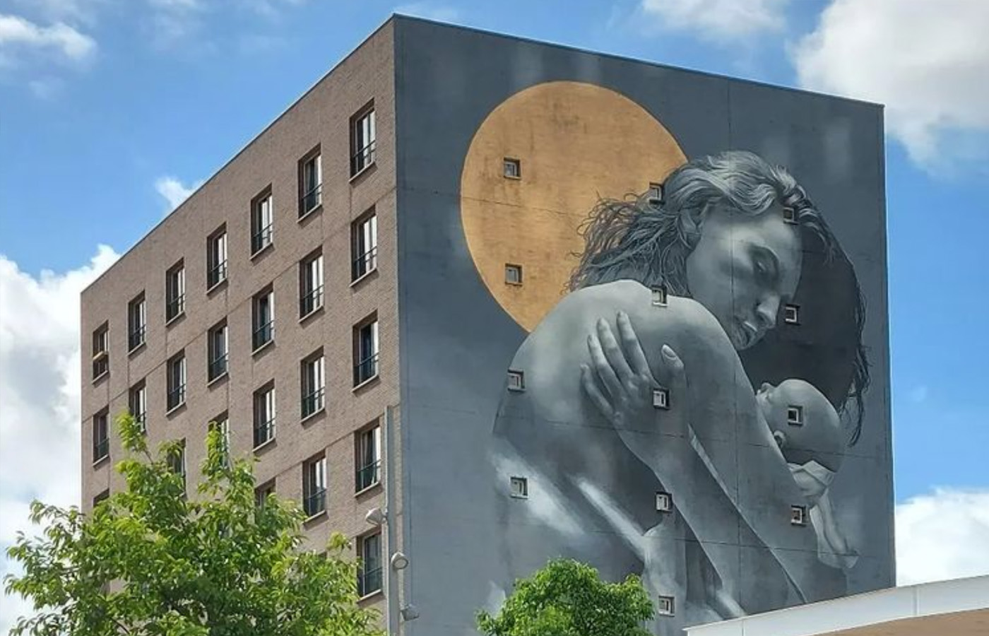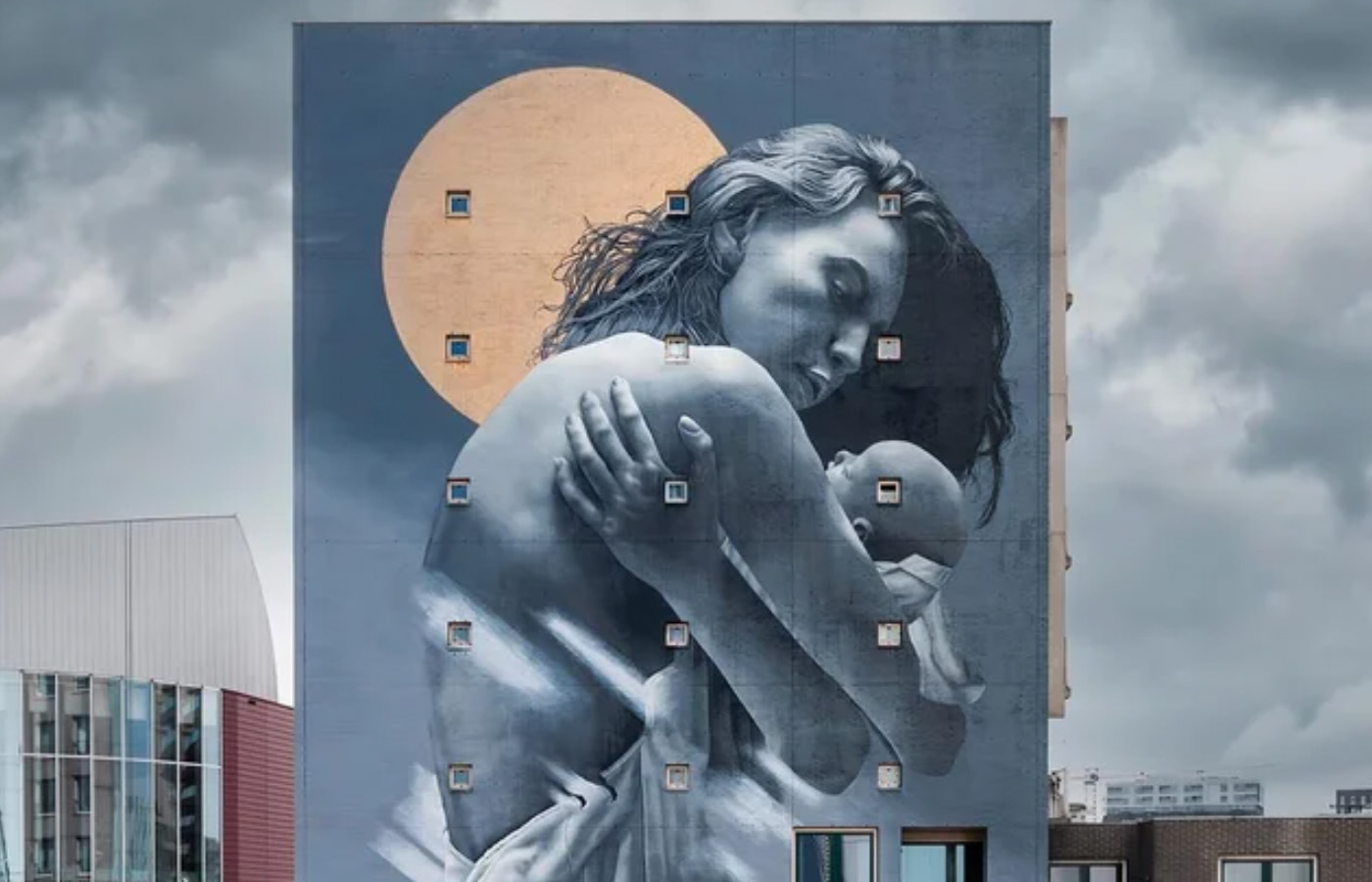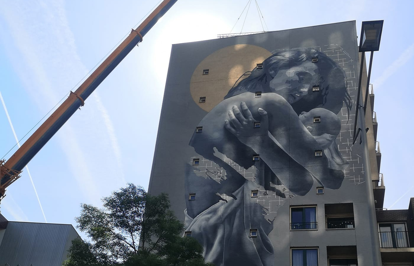 May 2022 was spent in Rotterdam with the senstaional JDL painting this epic piece. taking the pair of us 12 days of exhaustive non stop painting. at 10 stories and over 100 feet high this image has joined Rotterdams iconic skyline. Positioned next to unmistakable De Rotterdam and directly in view as you cross the Erasmus bridge, this piece is seen by tens of thousands daily. JDL concieved this with the ambition to raise money for a cancer charity. More on JDL here