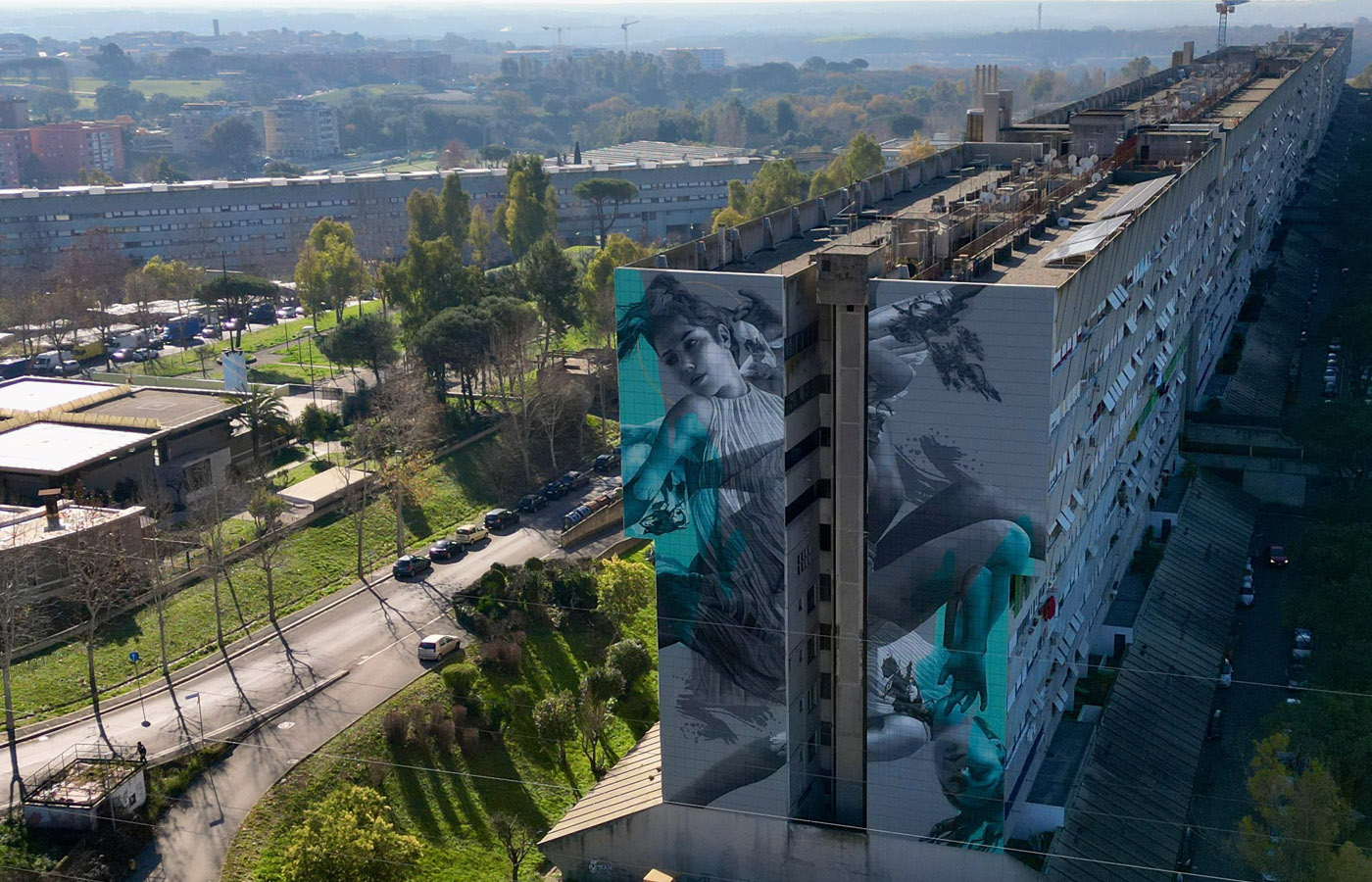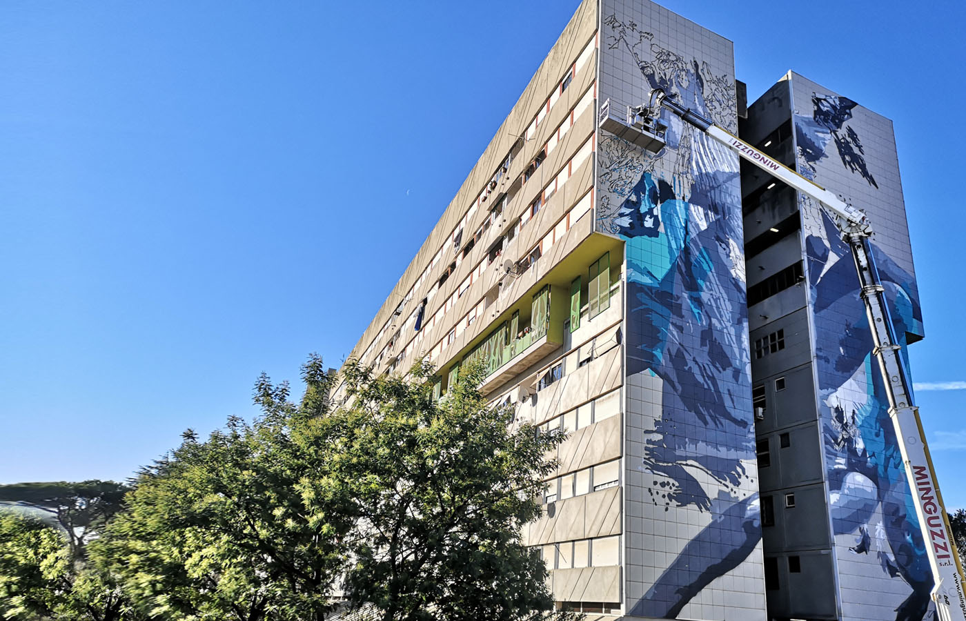 A Project by one of the World's Best Street Artists JDL. I assisted on this project situated on the side of the 1Km long Italian housing project Serpentone Corviale, depicting oil soaked Icararus.
